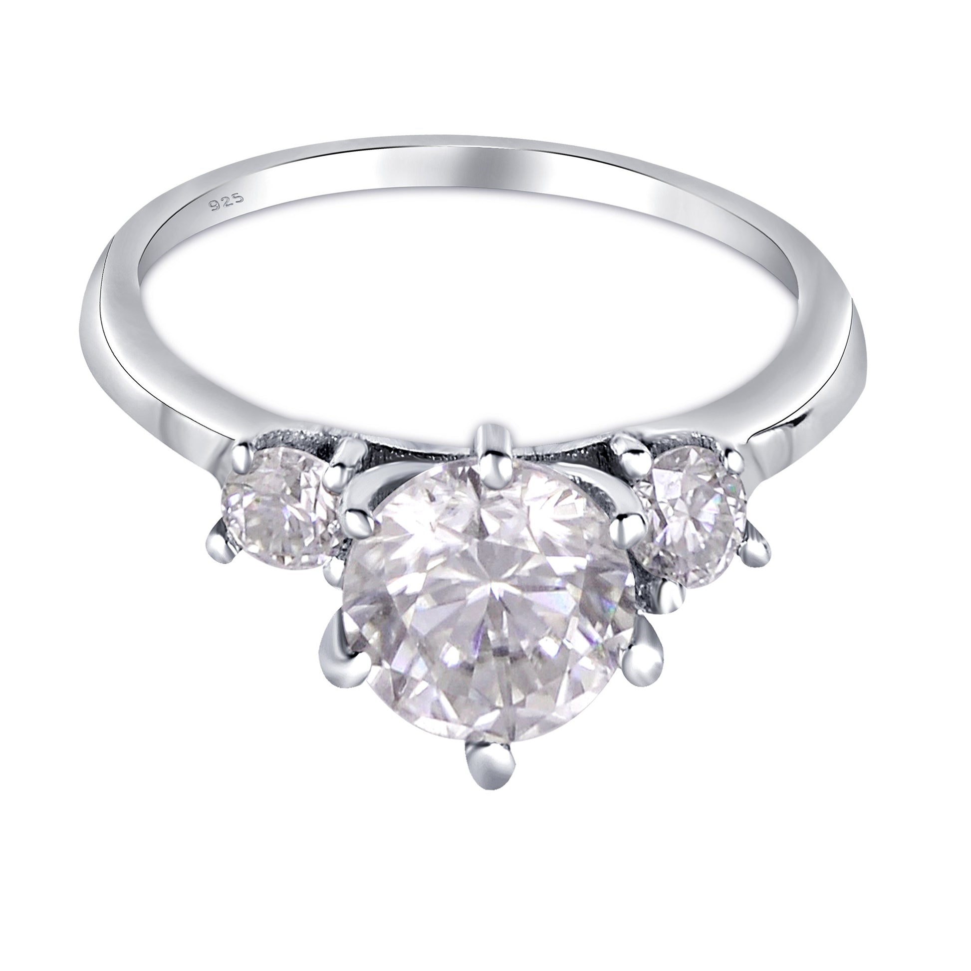 White Moissanite 3-Stone Ring Sterling Silver