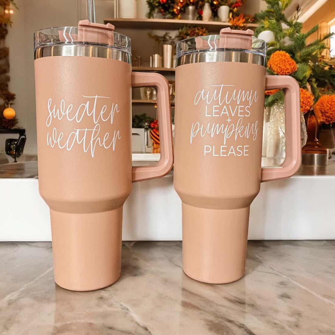 So go ahead, grab your flannel shirt and your "Autumn Leaves + Pumpkins Please" 40oz Tumbler – because when it comes to celebrating the best season of the year, why settle for anything less than pumpkin perfection? 🍂☕