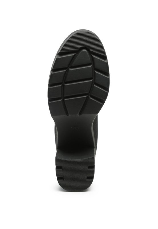 Knitted boots are catching attention - they keep feet warm and offer room to the feet. These flexible pair of block heeled boots are worth trying if you haven't already!